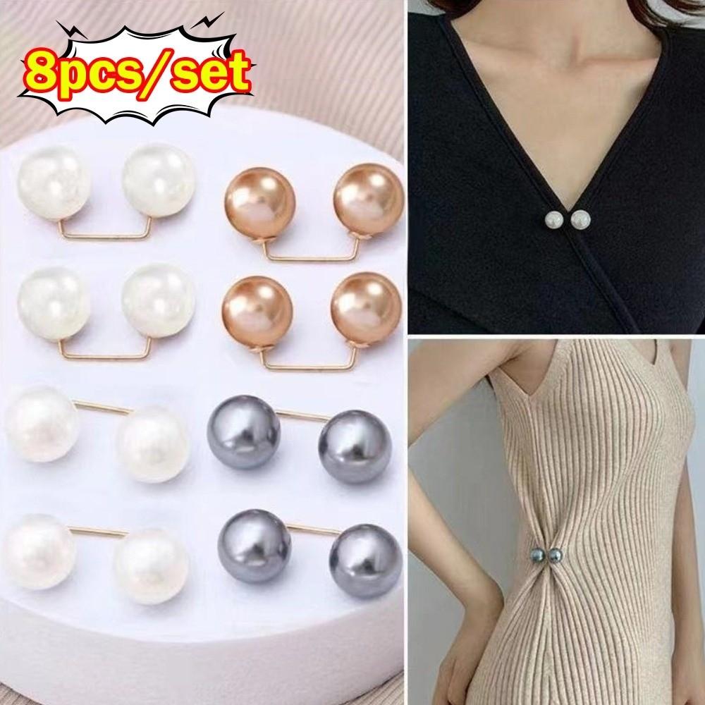 3/6/8PCS Adjustable Collar Clip Pearl Brooch Non-Slip Brooches New Safety Pins Dress Decoration