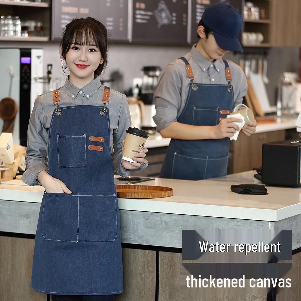 Waterproof Thickened Canvas Denim Apron for Coffee Shop & Milk Tea Work