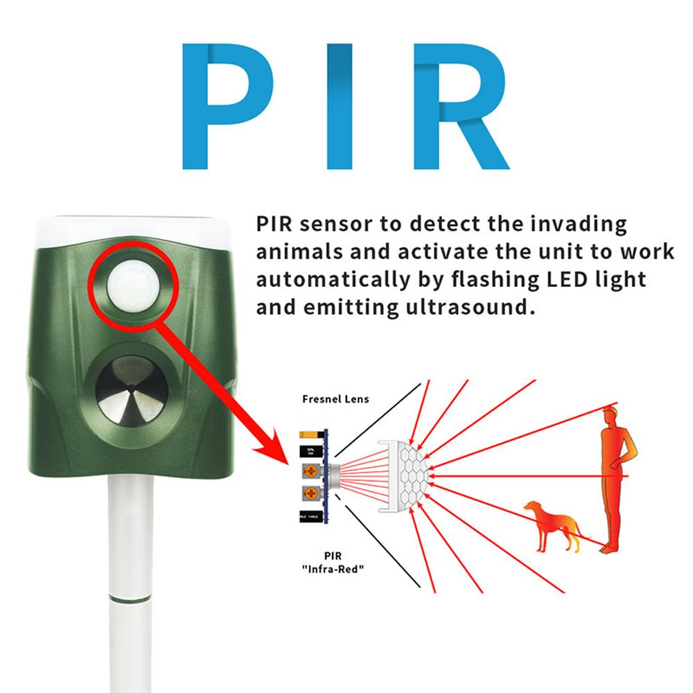Effective Animal Repellent: The solar-powered ultrasonics animal repeller is designed to effectively deter cats, dogs, birds, rats, , skunks, , raccoons, wild boars, and other animals from your orchard, farm, yard, garden, and more.