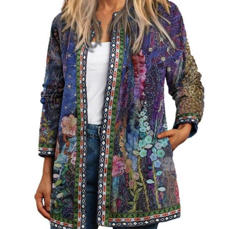 Представляем наше стильное и универсальное женское длинное пальто, идеально подходящее для весенней и осенней погоды. Это пальто, изготовленное из удобной ткани, имеет открытую переднюю часть и длинные рукава, что обеспечивает модный и модный внешний вид. Характерный дизайн принта добавляет нотку ретро-моды, выделяя вас из толпы.