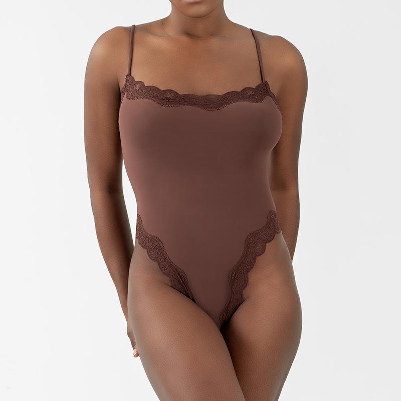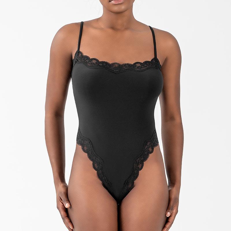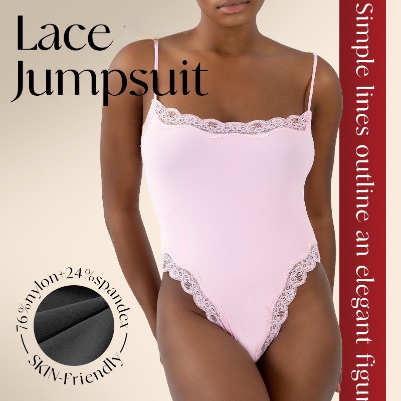 Women's Square Neck Sexy Lace Bodysuit Sleeveless Jumpsuit Solid Color Slimming Bodycon Rompers Tank Tops