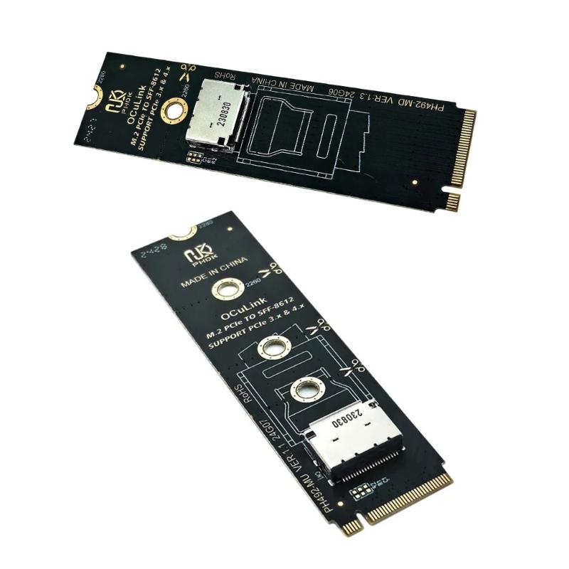 This to oculinks adapter enables seamless installation of U.2/U.3 SFF 8639 hdds into PCIe NVMe NGFFs slots while maintaining full speed performances without signals conversion chips, for PCIe4.0 protocols.