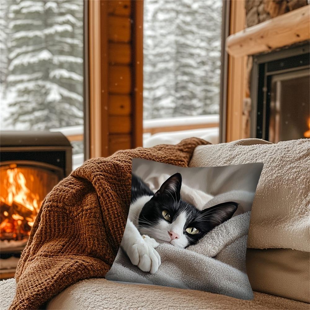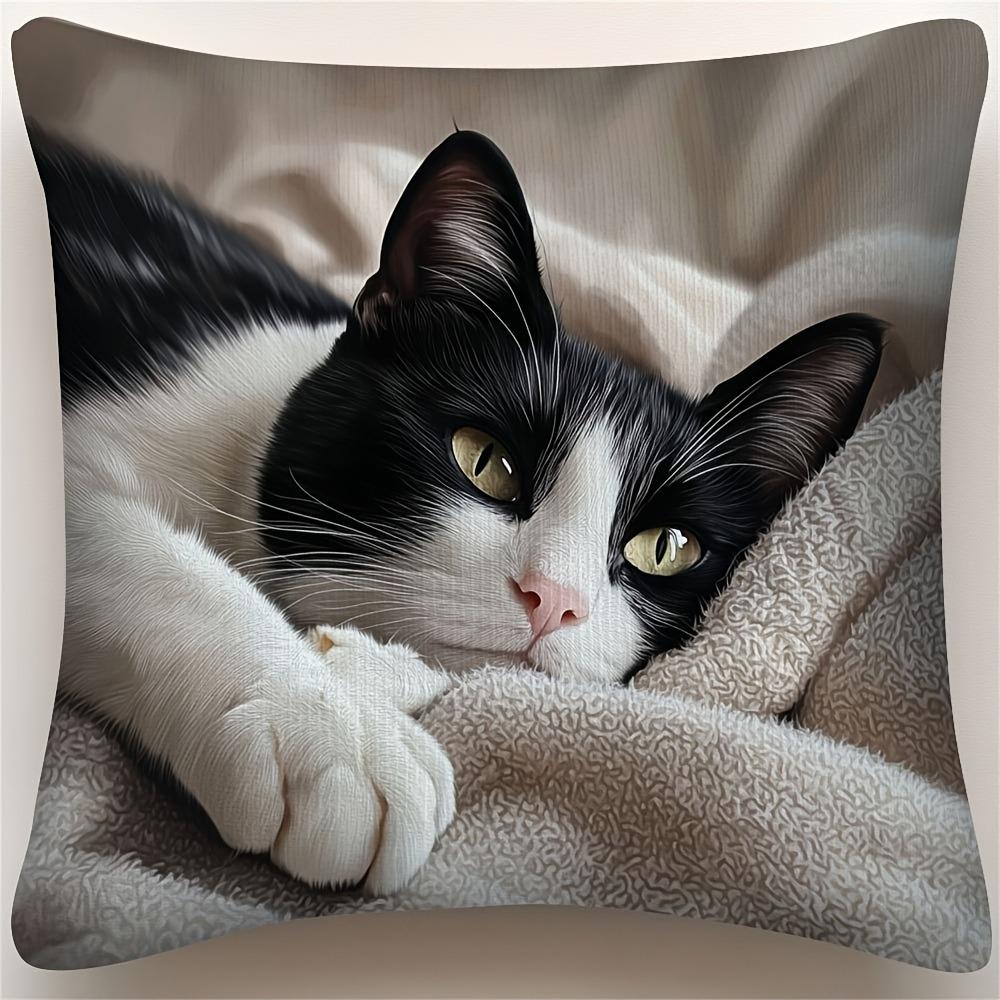 1 шт. наволочка в стиле ретро с белым котом-смокингом - односторонняя печать, молния