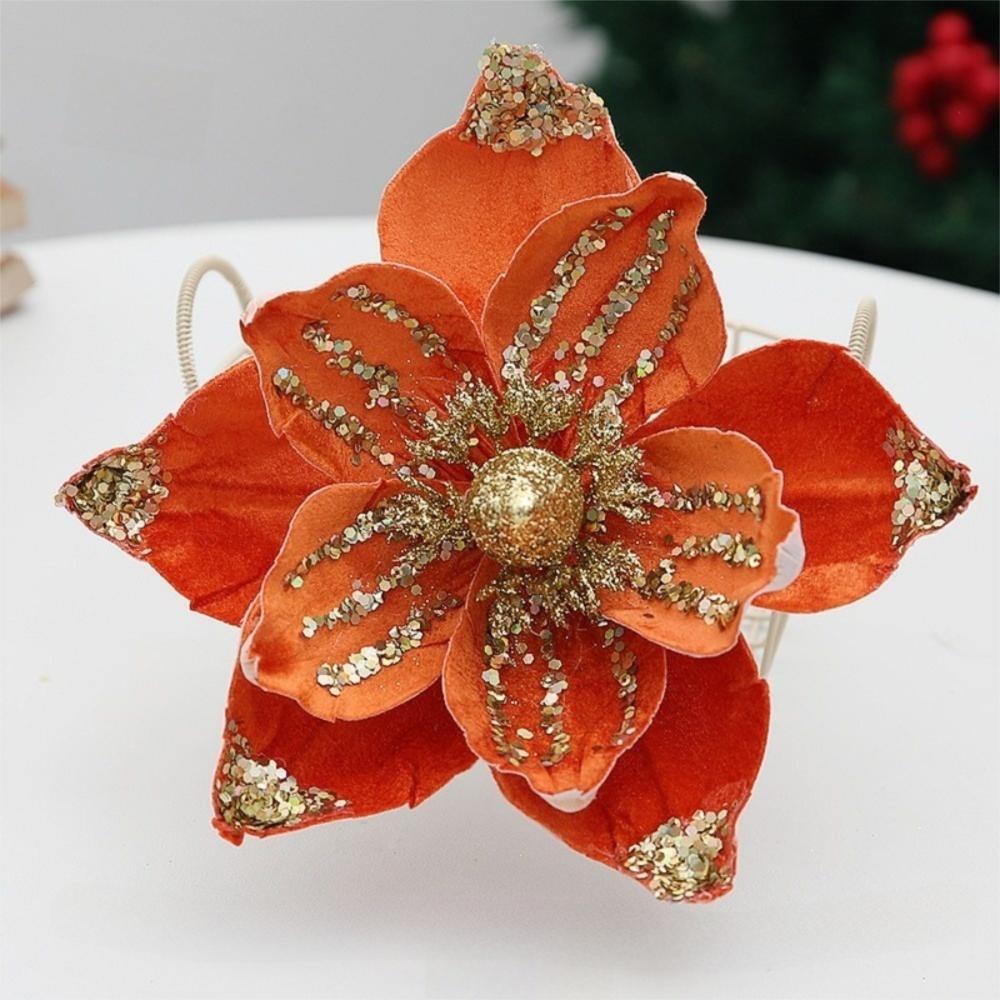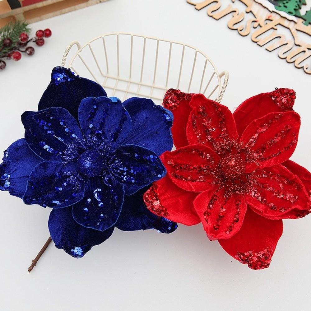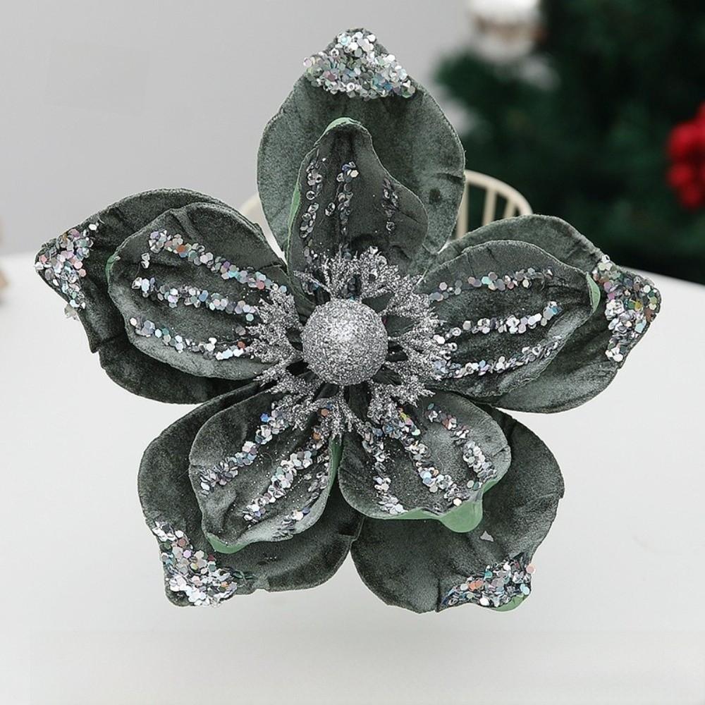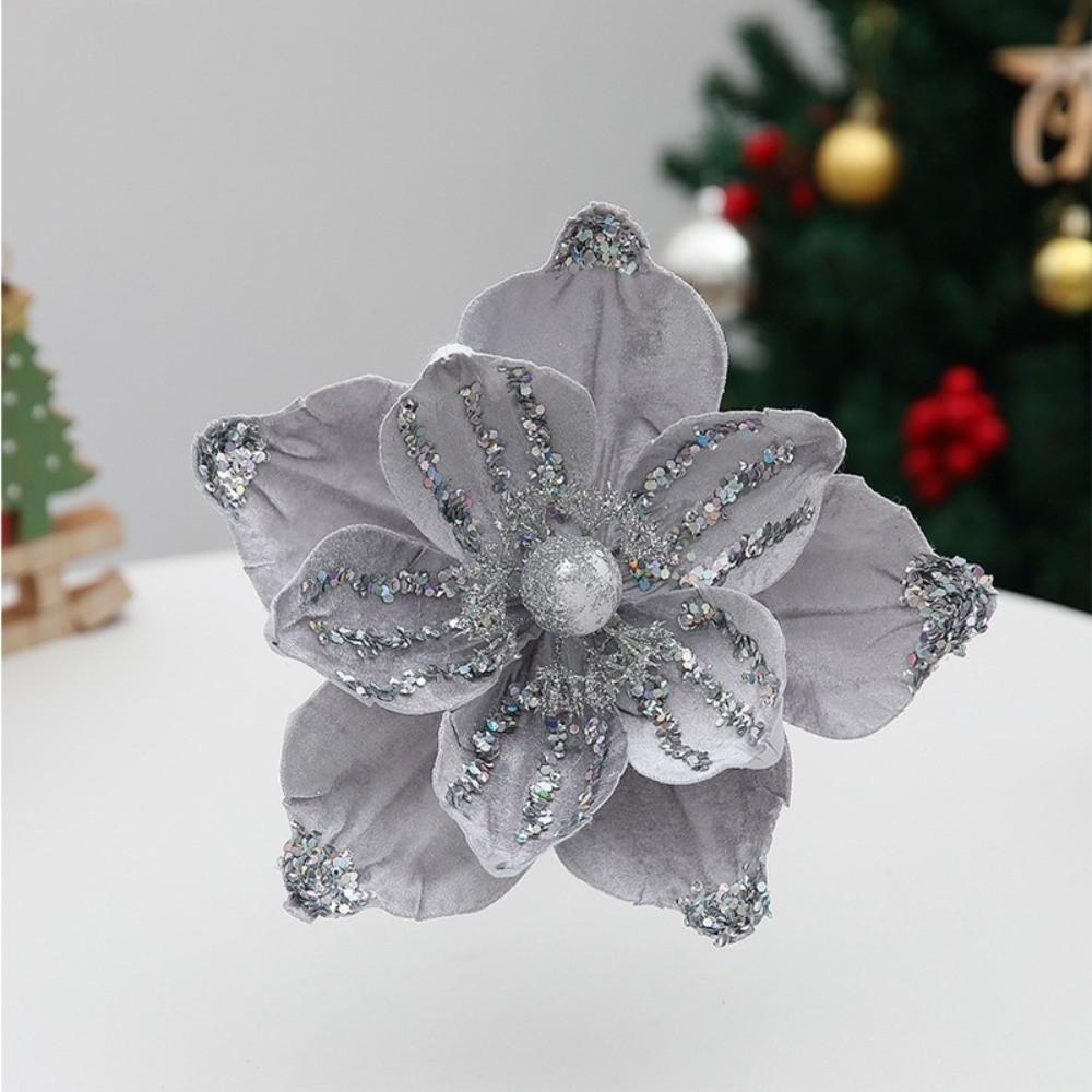 21cm Fake Christmas Flowers Sequin 3D Simulation Magnolia Wedding Party Decoration