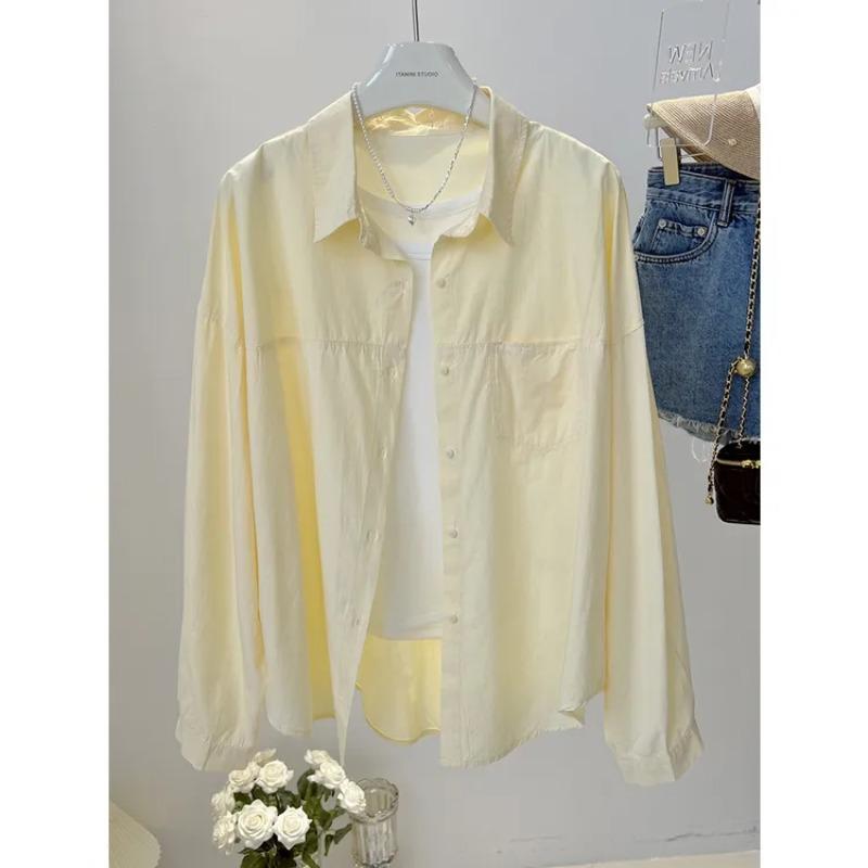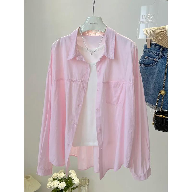 Дышащая однотонная блузка рубашка с воротником оверсайз с длинным рукавом для женщин