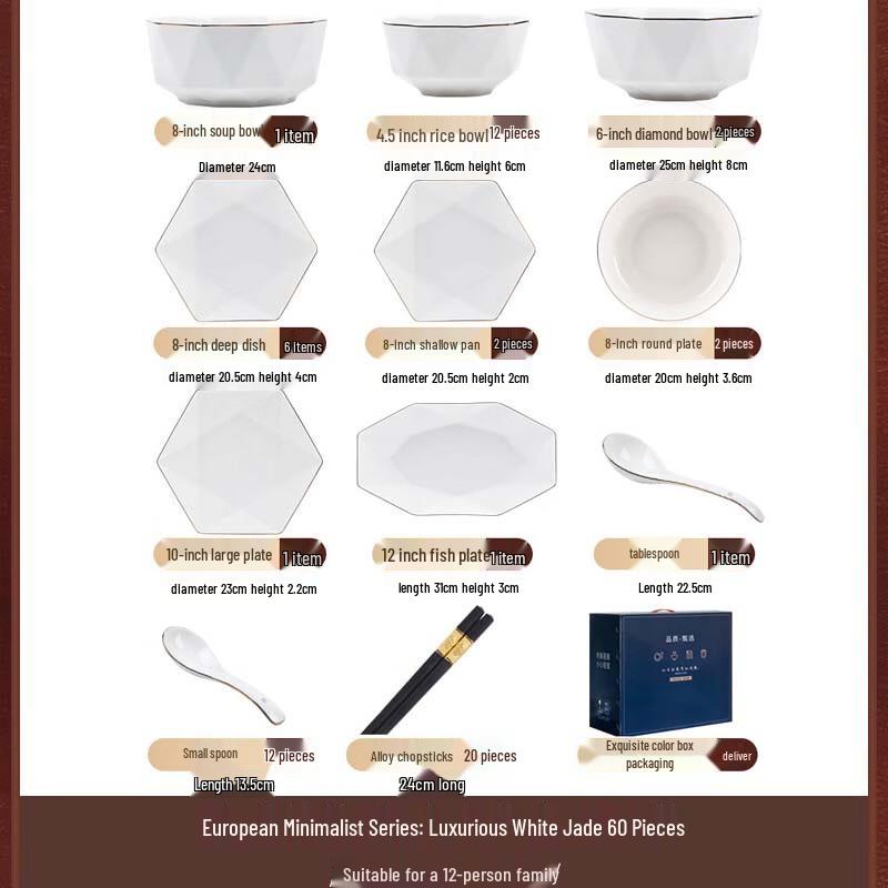 Набор керамической посуды Ailanhui Jia DH класса люкс с золотой каймой