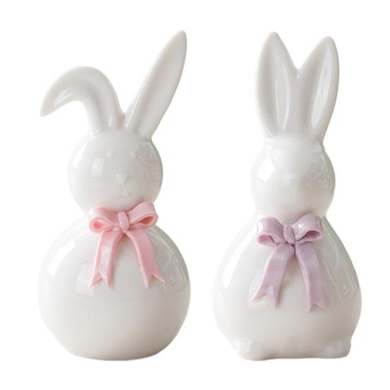Украшение мягкого цвета: Украшенные очаровательными бантами на шее, кролики демонстрируют свежие, элегантные цвета, которые создают теплую и располагающую атмосферу.. Эти нежные оттенки идеально дополняют весенние и пасхальные декоративные темы.