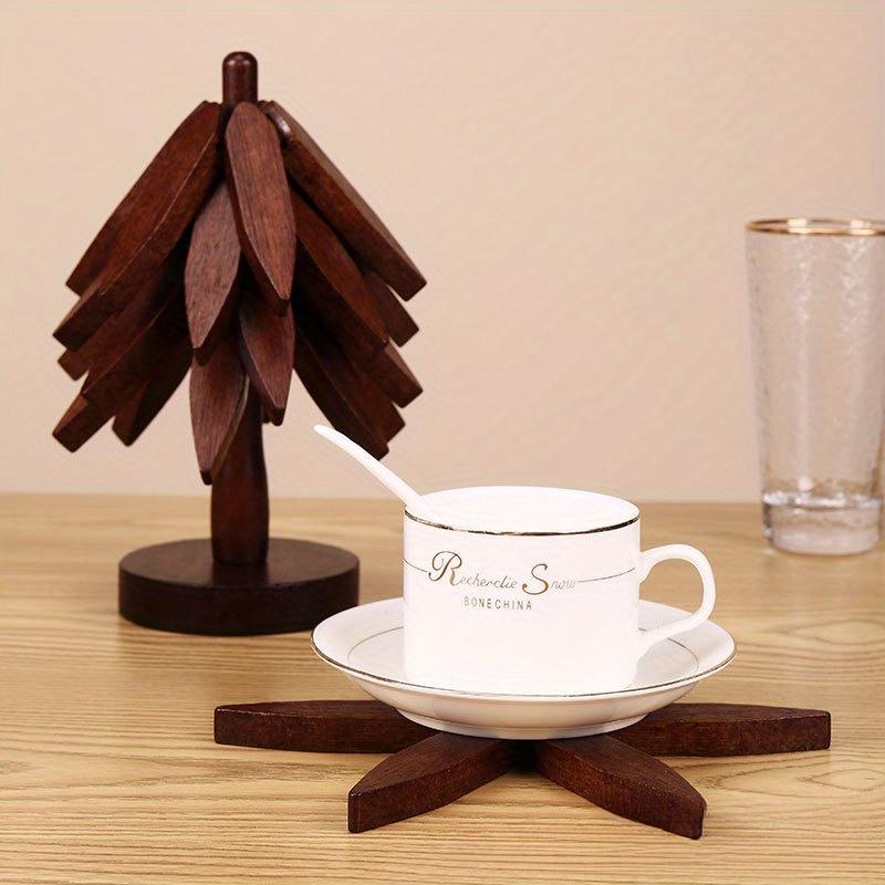 Деревянная подставка для горячих блюд, складная, в форме дерева, из черного ореха, подставки-коврики для стола, набор термоизолированных подкладок, подставки-костеры, защита от ожогов, термостойкость