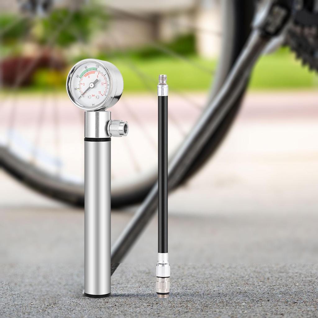 Bike Pump Bicycle Inflator with Gauge High Pressure Ball Needles Tire Portable