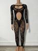 Benqian эротичный однотонный комбинезон с круглым вырезом, кружевной, с вырезами, облегающий, с длинным рукавом, для флирта YDT032
