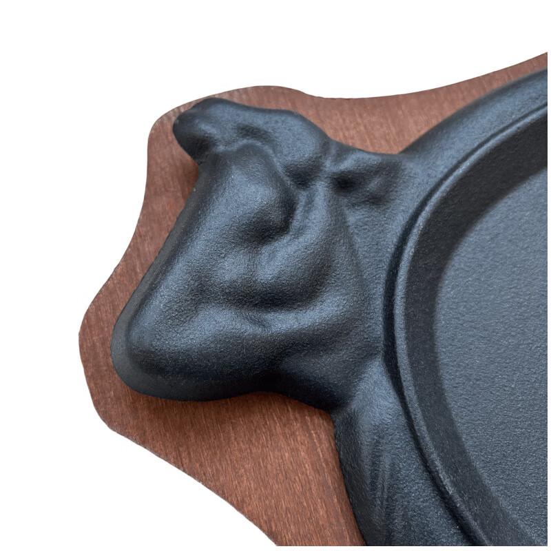 ZISIZ Cast Iron Ox-Shaped Teppanyaki Griddle with Wood Base