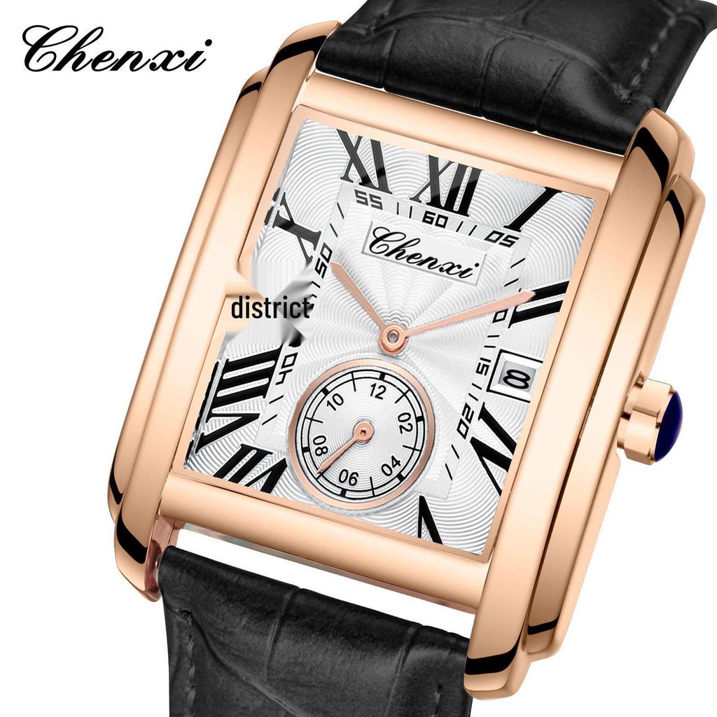 Модные квадратные кварцевые часы Douyin с кожаным ремешком - Бренд Morning Dawn для мужчин — купить товар онлайн с бесплатной доставкой по всему миру!