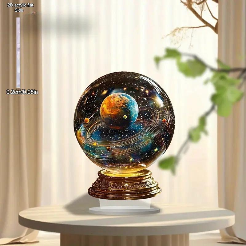 Crystal Ball Lamp Laser Engraved Galaxy Planet Moon Saturn - 2D Flat Acrylic Desktop Ornament, Wall Decor Art, Four Seasons Decoration