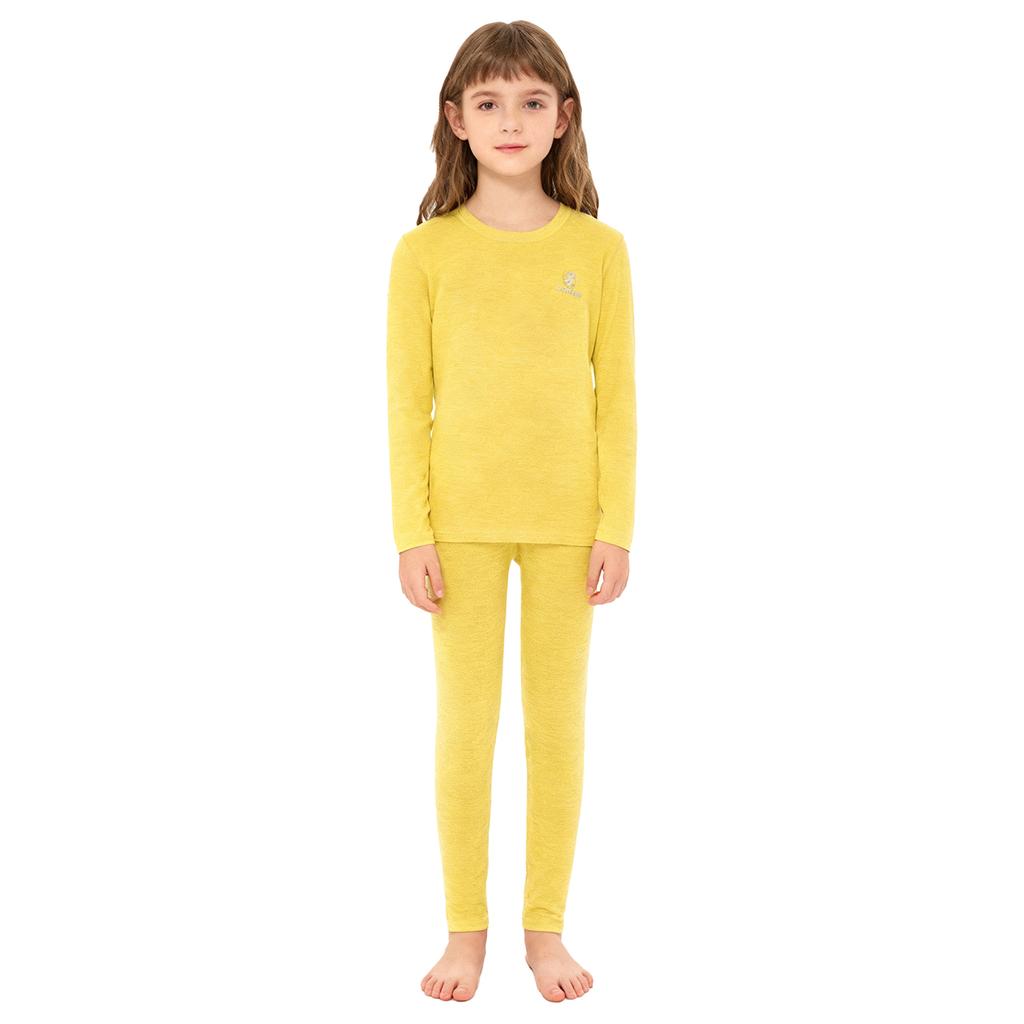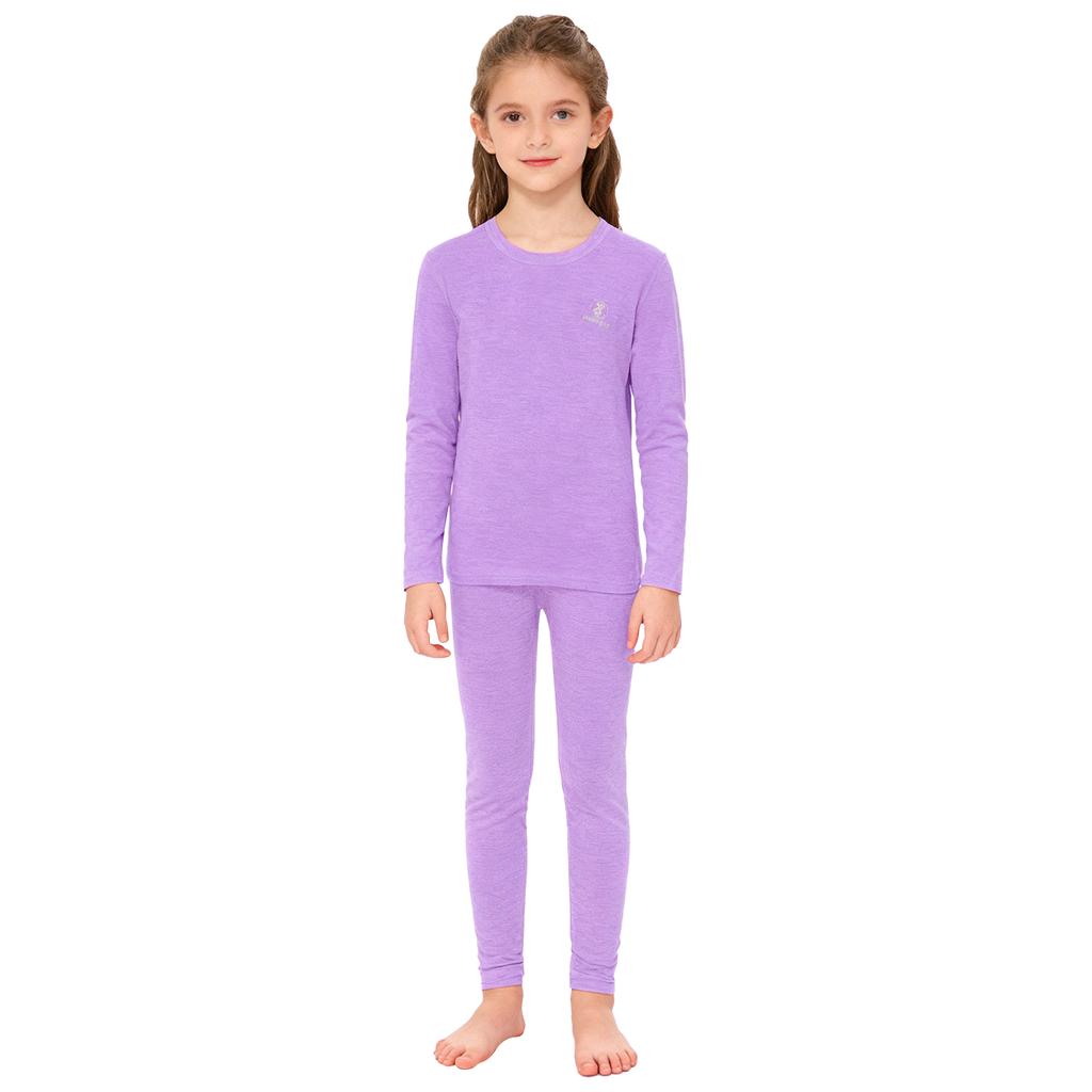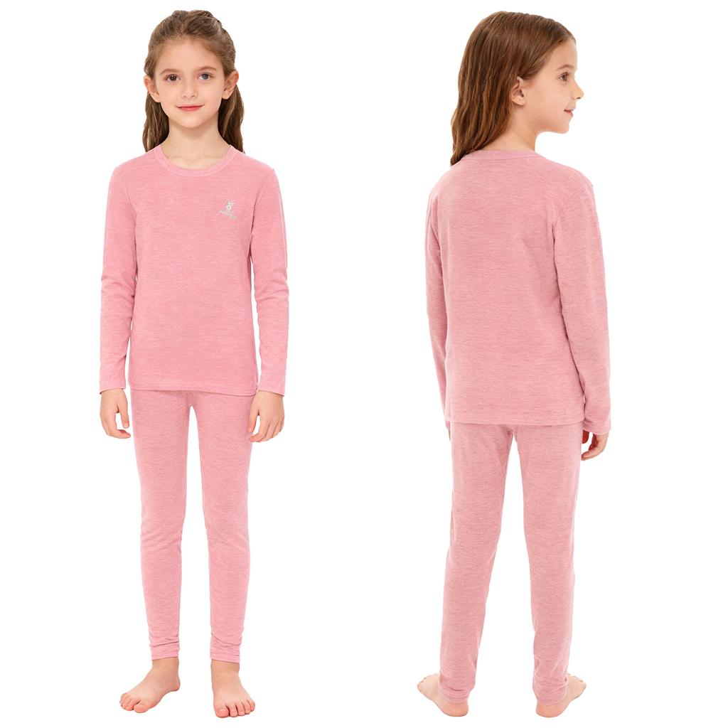 Kids Warm Loungewear Set 2-Piece, Solid Color Thermal Long Sleeve Shirt & Elastic Waist Pants, Sleepwear Winter Underwear
