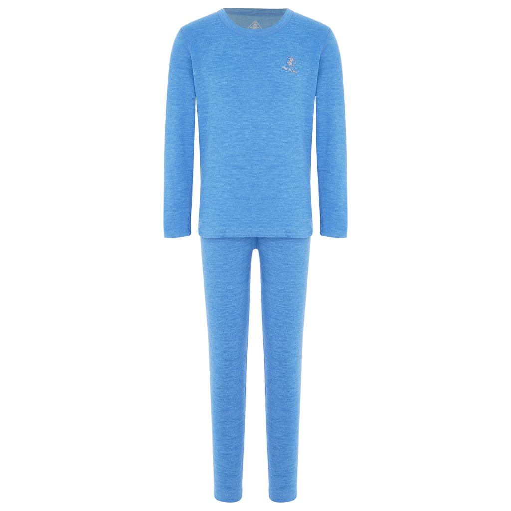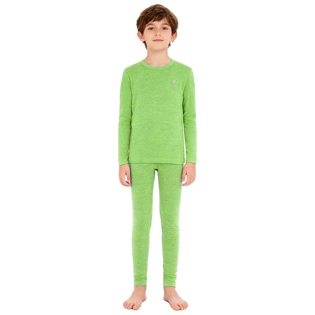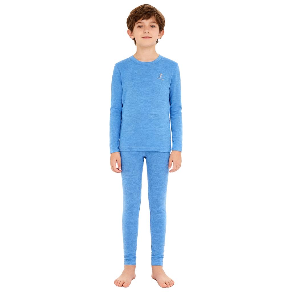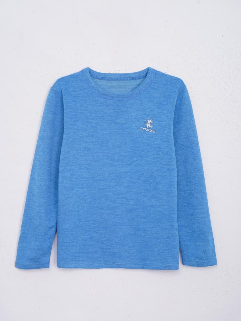 Kids Warm Loungewear Set 2-Piece, Solid Color Thermal Long Sleeve Shirt & Elastic Waist Pants, Sleepwear Winter Underwear
