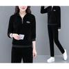 Вельветовый повседневный спортивный костюм для женщин, весенне-осенний, свободный, большого размера, модный комплект из двух предметов