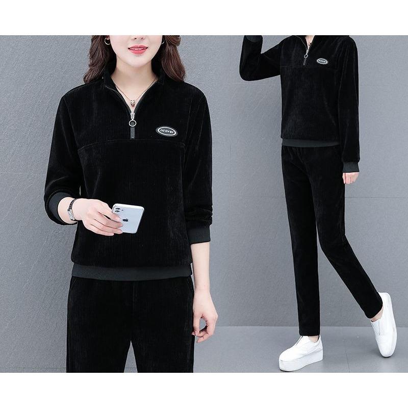 Вельветовый повседневный спортивный костюм для женщин, весенне-осенний, свободный, большого размера, модный комплект из двух предметов — купить товар онлайн с бесплатной доставкой по всему миру!