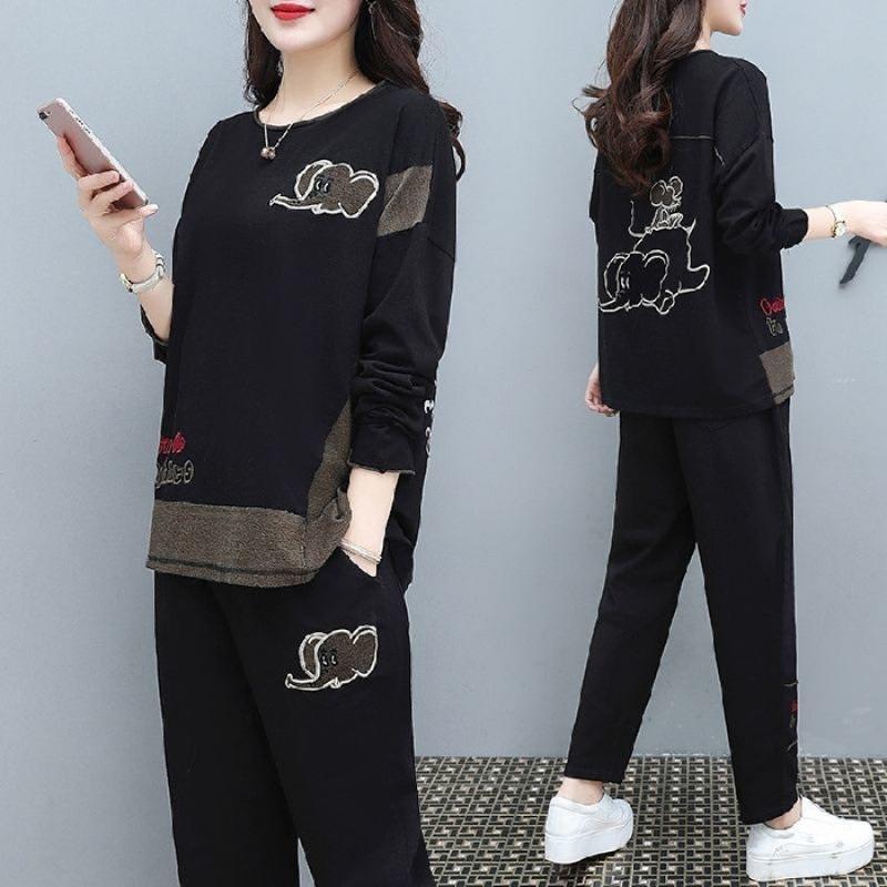 Осенний женский спортивный костюм большого размера - Летний облегающий наряд для пышных девушек, Повседневный костюм-двойка