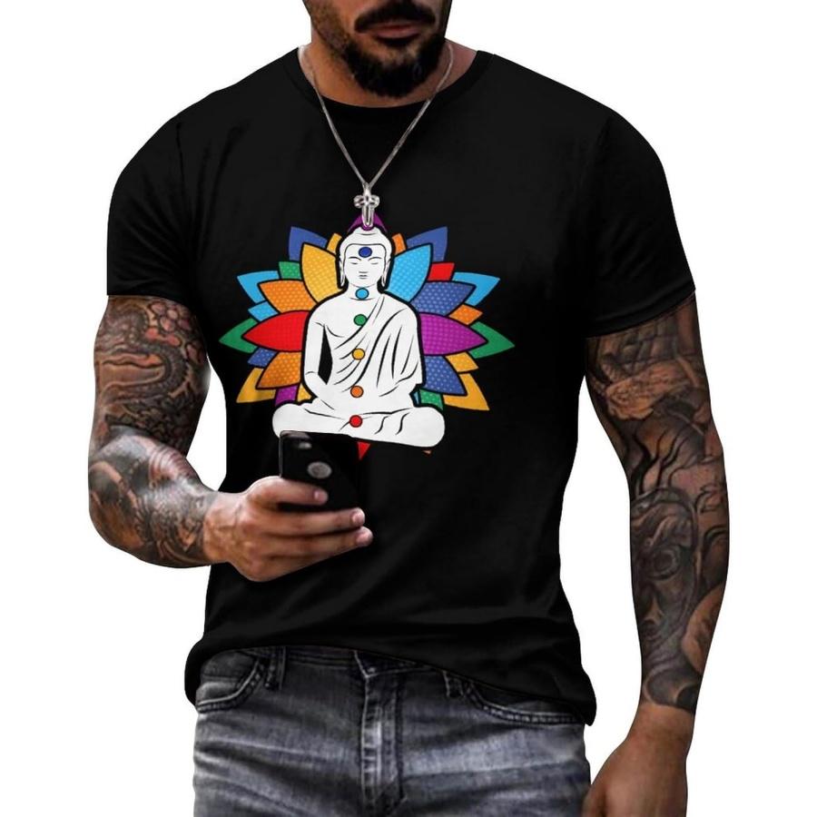 Мужские хлопковые футболки с круглым вырезом, повседневные рубашки, медитация Будда Чакра