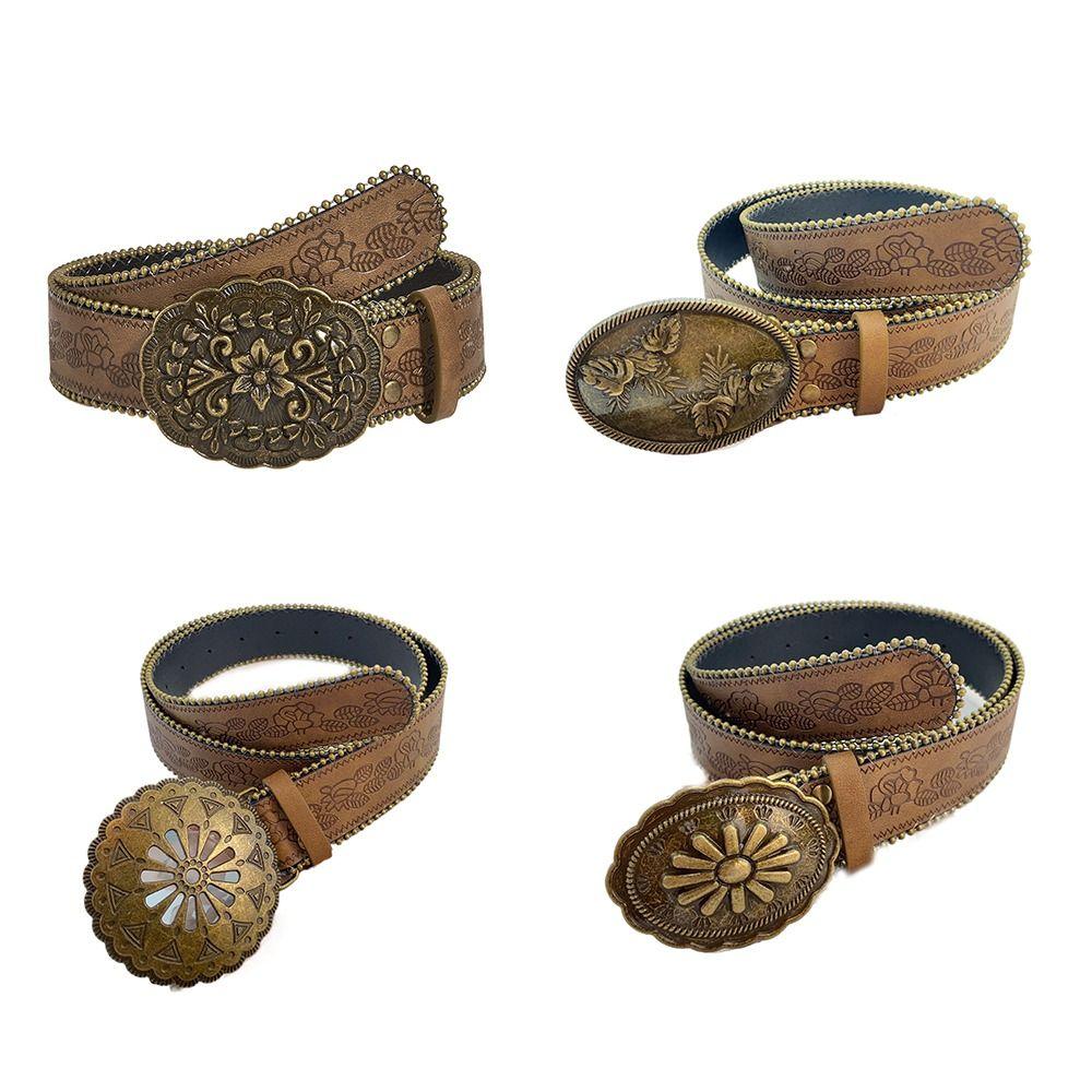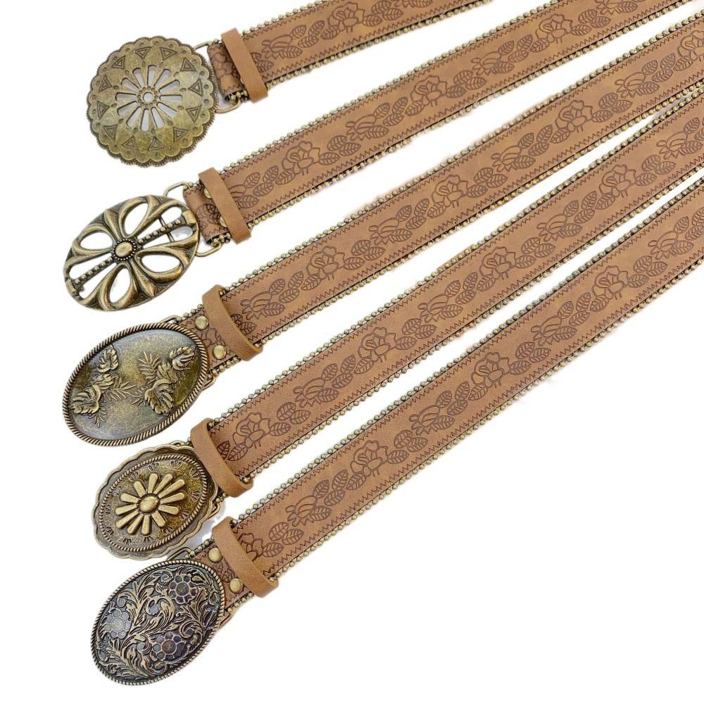 Vintage Cowboy Belt PU Leather Western Belt Fashion Women Belt for Jeans Pants Dresses