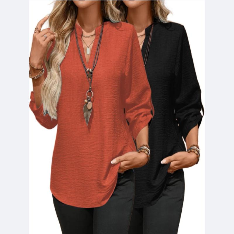 Новый комплект из 2 женских рубашек смешанной расцветки с V-образным вырезом и небольшим воротником-стойкой, декоративной кулиской.