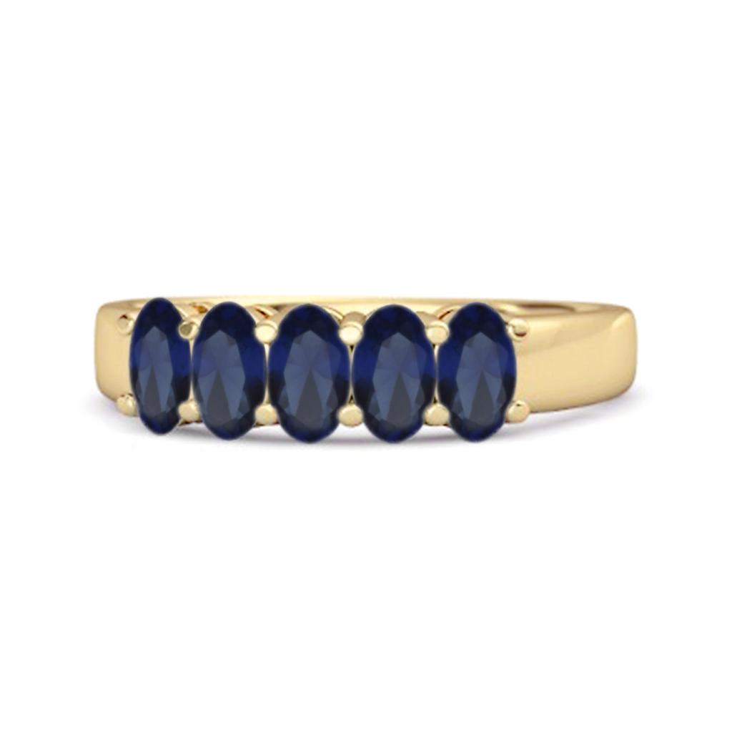 Элегантное кольцо с пятью камнями 1,75 карата с 5x4 мм овальными синими сапфирами из стерлингового серебра 925 пробы. Вневременной дизайн, идеально подходящий для повседневной носки или в качестве подарка.