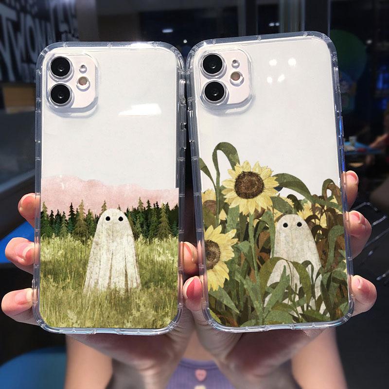 Soft TPU Clear Shockproof Phone Case for IPhone 11 12 13 14 Mini Pro Max XR X XS 8 7 6 6S Plus SE 2020 Cute Ghost Cover Bag