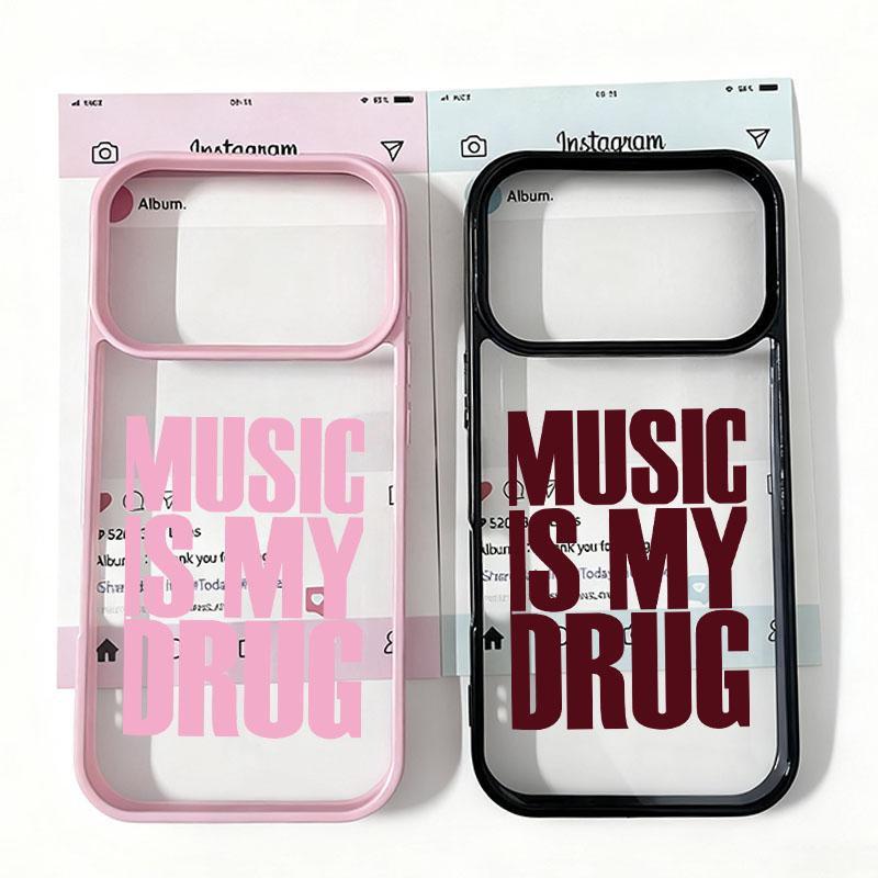 Модная Чехол-Брелок Музыка - Мой Наркотик Для iPhone 17 Pro Max 17Pro 17Air 17 Простые Цитаты Прозрачный Жесткий Чехол Ударопрочный Корпус