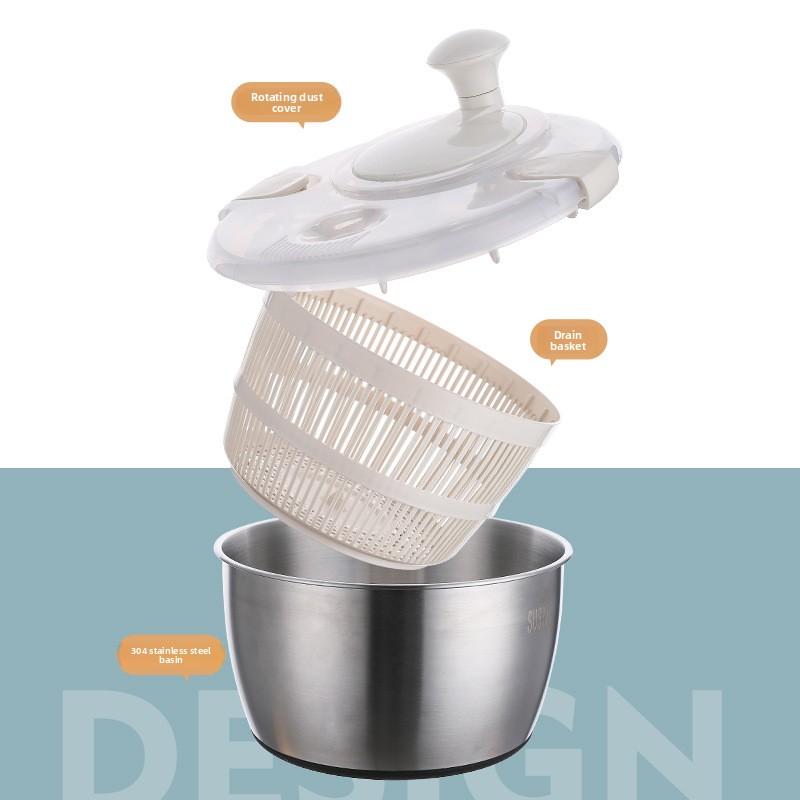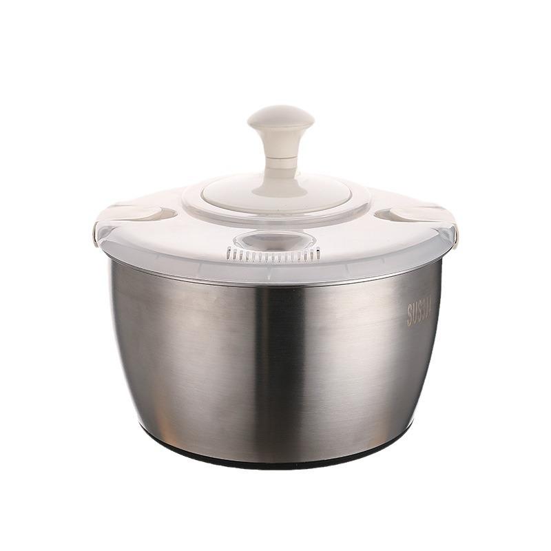 6L Salad Spinner Stainless Steel Large Vegetable Washer With PP Lid For Fruit Washer Pasta & Fries Spinner Salad Dryer