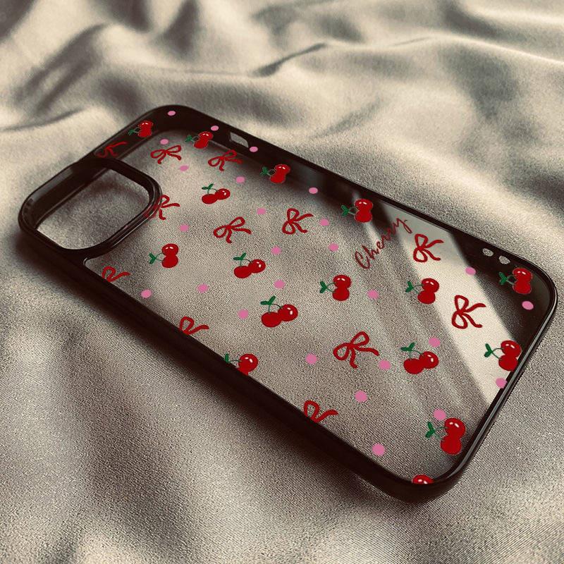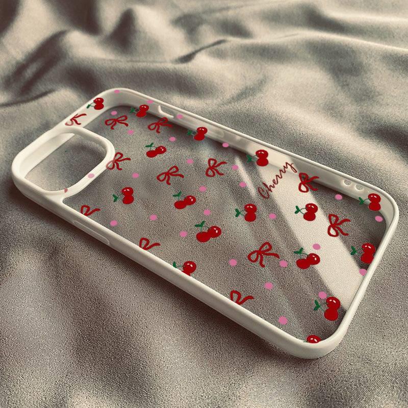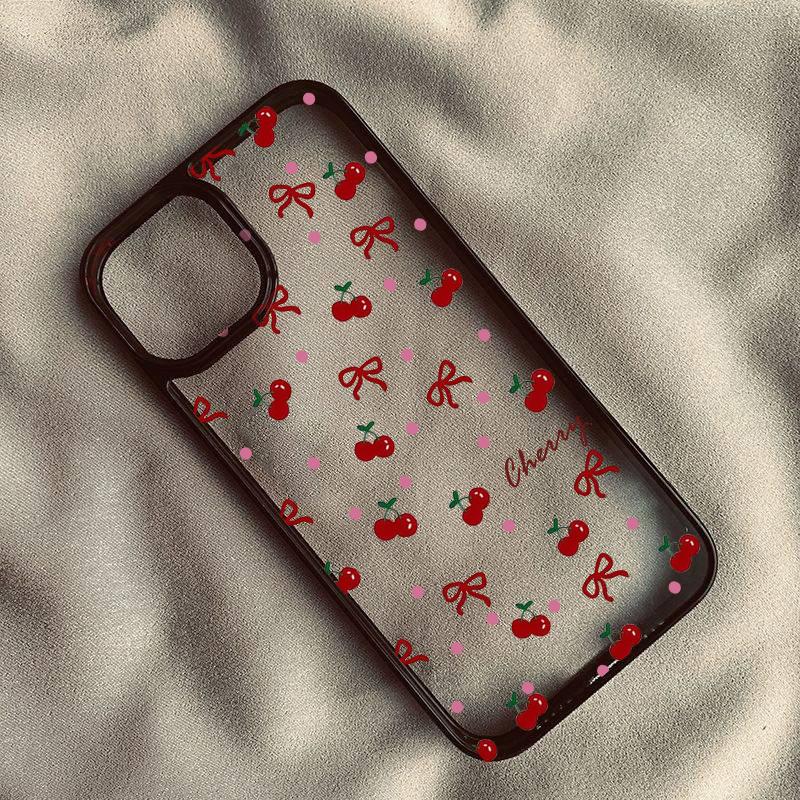 Чехол для телефона с вишней для iPhone 15 13 12 11 16 14 Pro Max 14 15 16 Plus Противоударный Мягкий Милый Чехол с Сердцем и Бантом Fundas