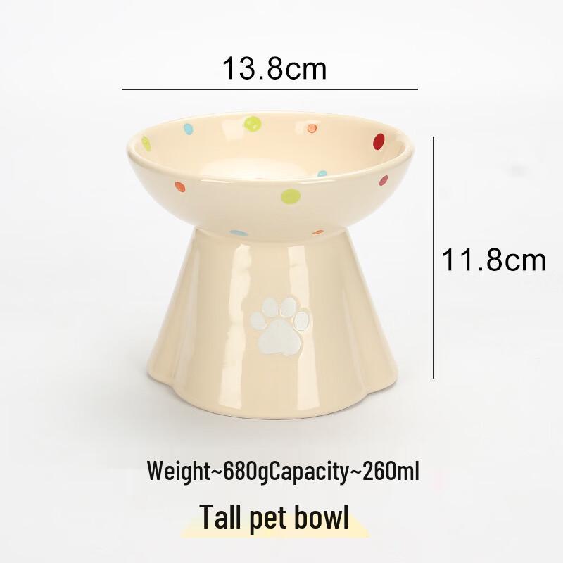 Yi Pan Polka Dot Ceramic Elevated Pet Bowl