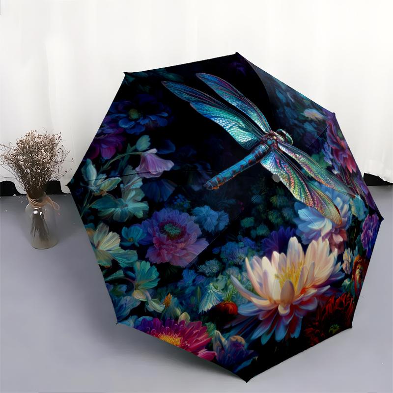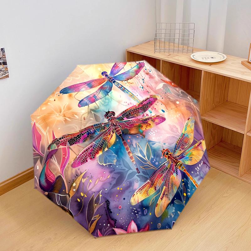 1 PC Automatic Folding Umbrella - Beautiful dragonfly Pattern, Portable & Foldable Design with 8 Ribs, Christmas Birthday Gifts