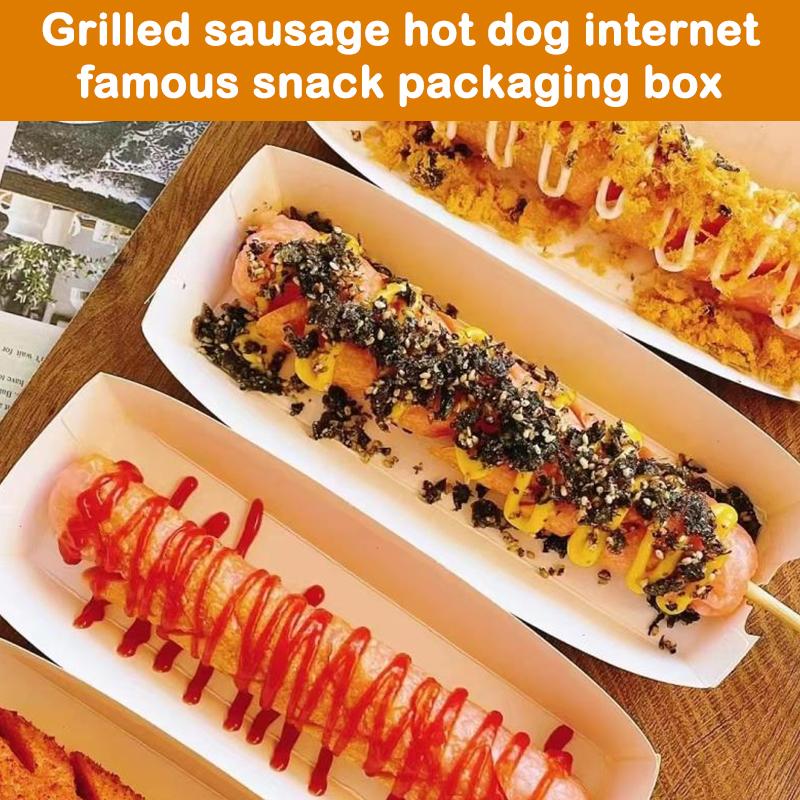 100 шт. Коробка для упаковки хот-догов без складывания Бумажная Одноразовая Посуда для вечеринок Поднос для подачи еды Для кейтеринга Упаковочные коробки
