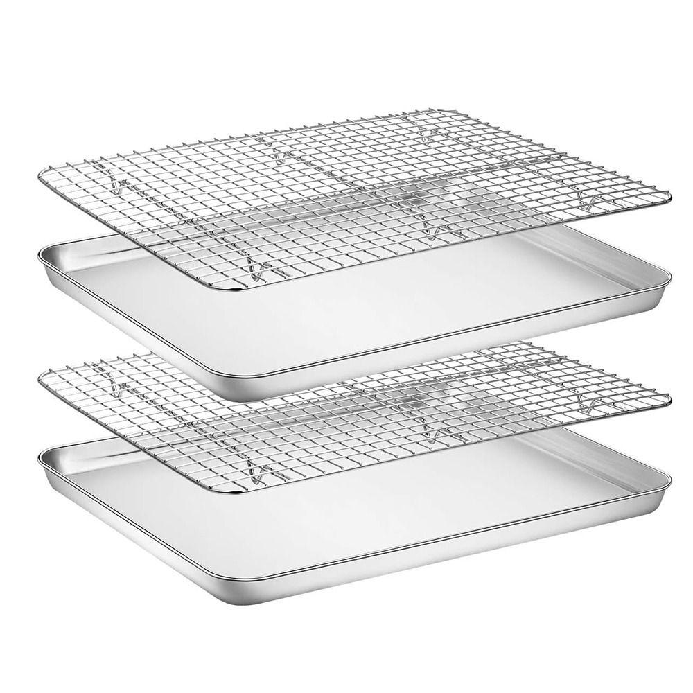 Wire Racks Baking Sheet with Cooling Rack Set Stainless Steel Pizza Barbecue Shelf Women — купить товар онлайн с бесплатной доставкой по всему миру!