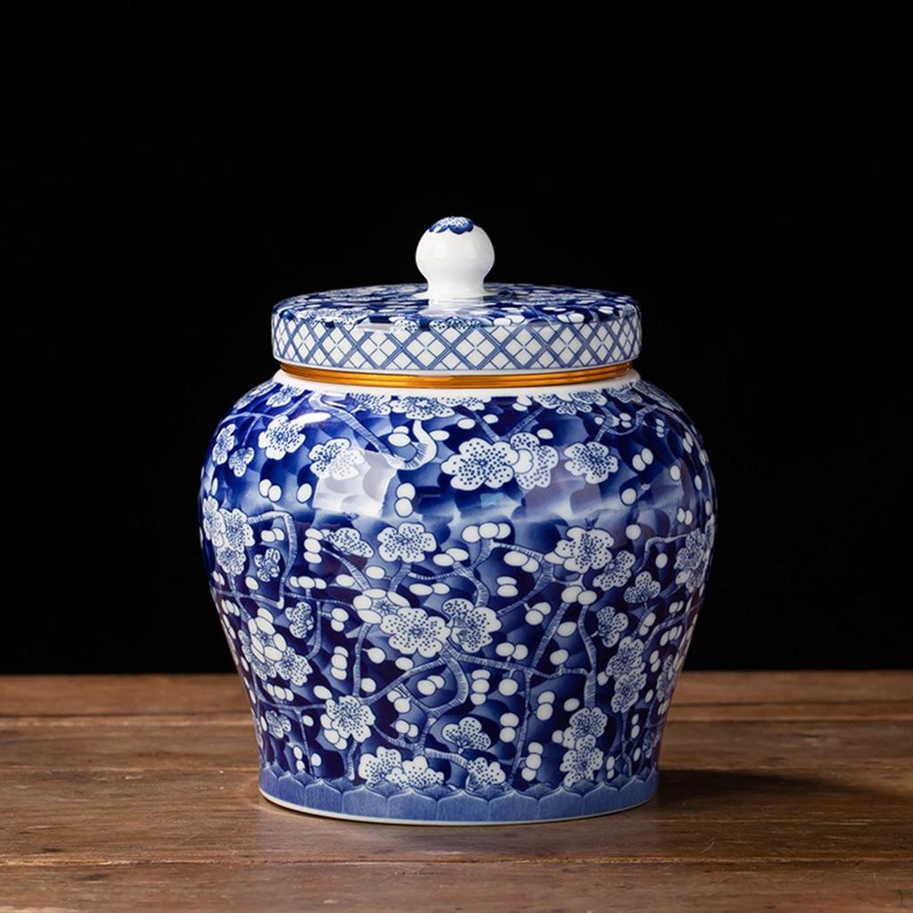 - 【Китайский стиль】Керамическая банка для имбиря с китайским традиционным узором, тонкая работа, она делает украшение вашей комнаты более стильным