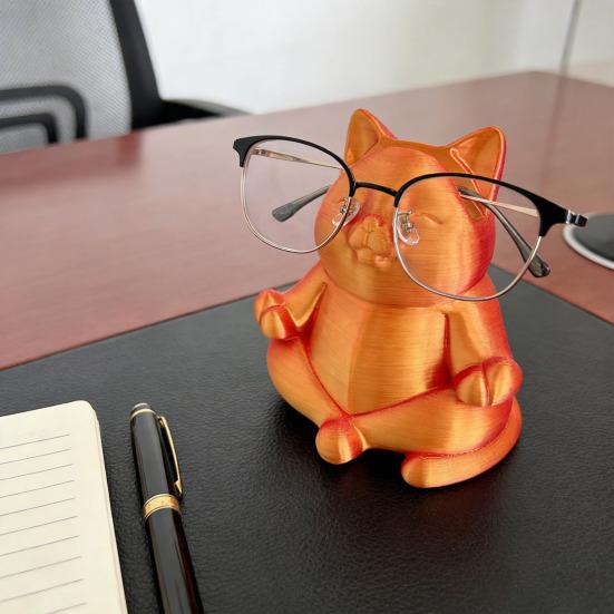 Этот универсальный держатель для очков предлагает несколько вариантов размещения, идеально вписываясь в прикроватные тумбочки, книжные полки, письменные столы или офисные зоны.. Его компактный дизайн предотвращает беспорядок, добавляя тепло и очарование любому пространству.. Каждая статуэтка медитирующего кота, выполненная с изысканной детализацией, отличается реалистичными текстурами и яркими цветами, что улучшает как функциональность, так и декор.. Изготовленный из прочного материала PLA, этот держатель для очков имеет гладкую поверхность со скругленными линиями, обеспечивая долговечность..