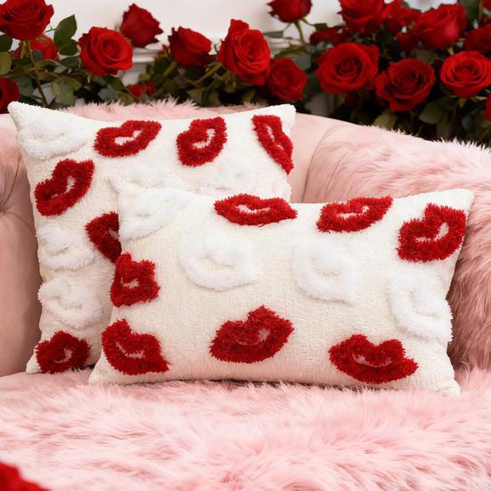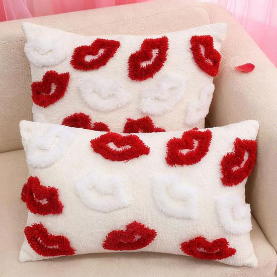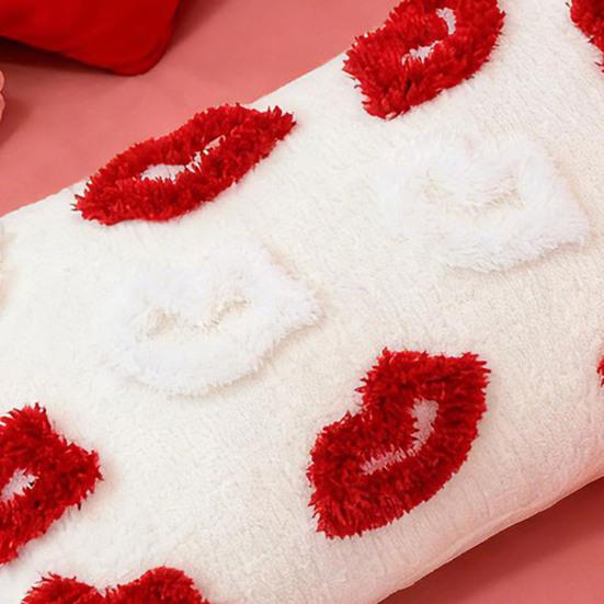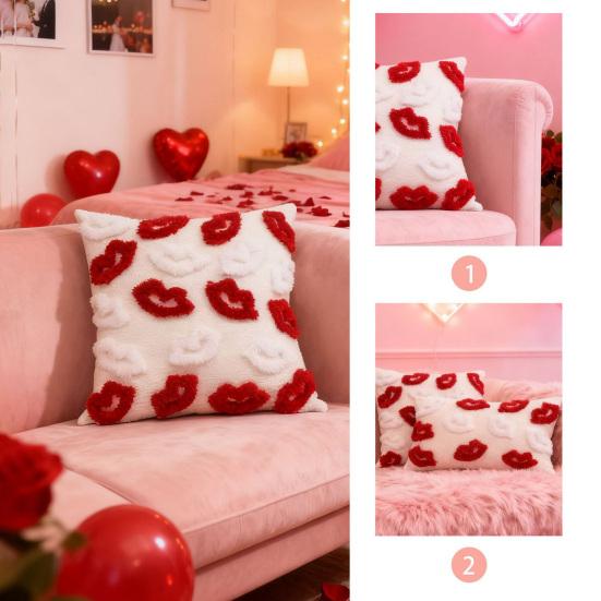 Романтический красный шенилл: Этот чехол для подушки насыщенного красного цвета с плотным рельефным плюшевым узором в виде губ мгновенно преображает любое пространство, создавая страстную и уютную атмосферу.. Сложный мотив губ добавляет игривый, но элегантный штрих, что делает его идеальным для Дня святого Валентина, годовщин или романтических тем домашнего декора.