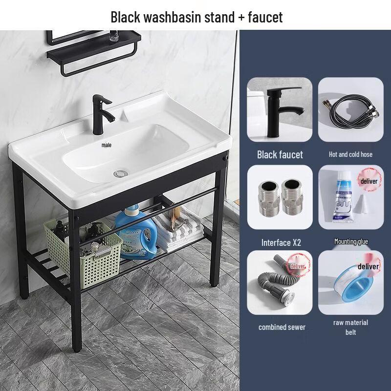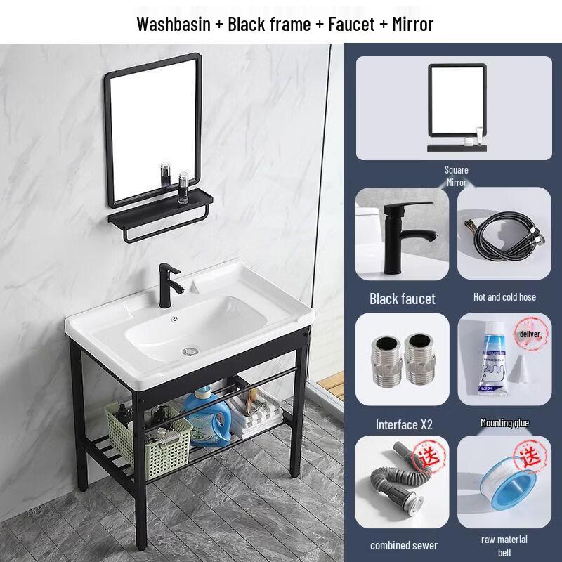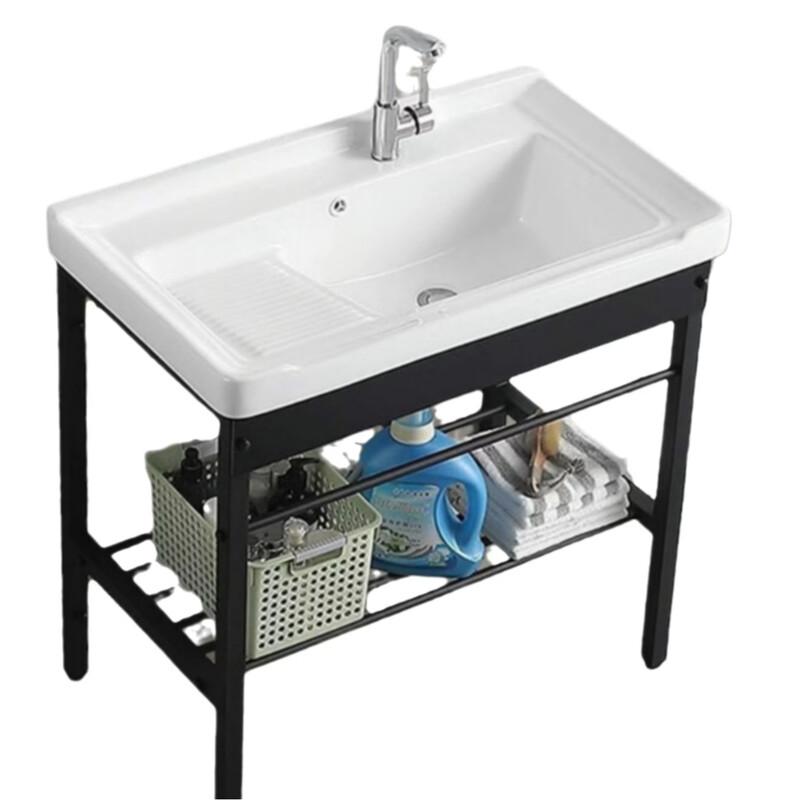 Stainless Steel Bracket Ceramic Wash Basin with Faucet