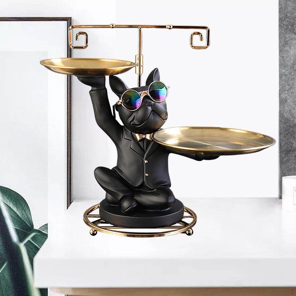 - Статуя французского бульдога: Наша скульптура собаки изображает бульдога-дворецкого в солнцезащитных очках, держащего 2 подноса. Креативная и декоративная, идеально подходит для современного домашнего декора.