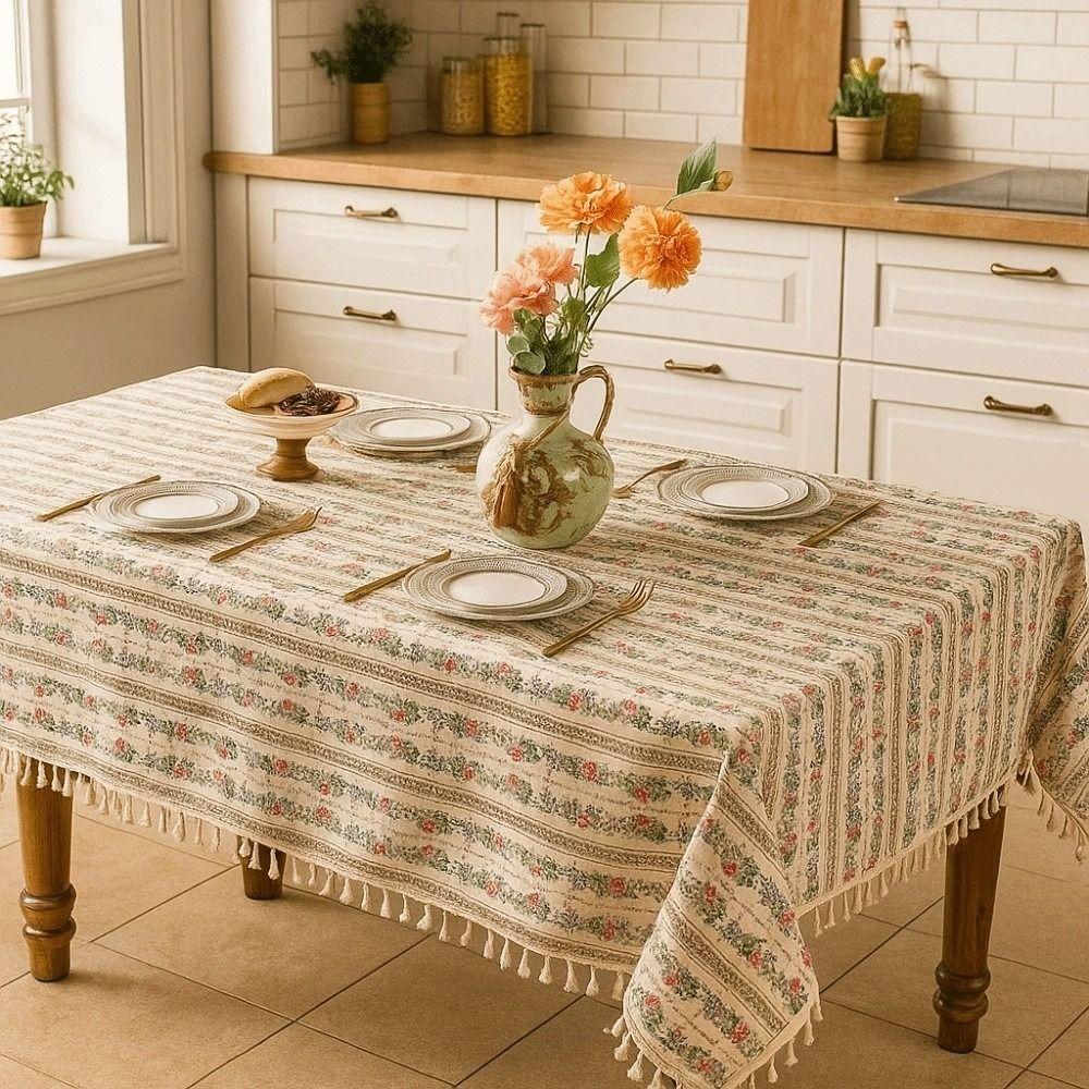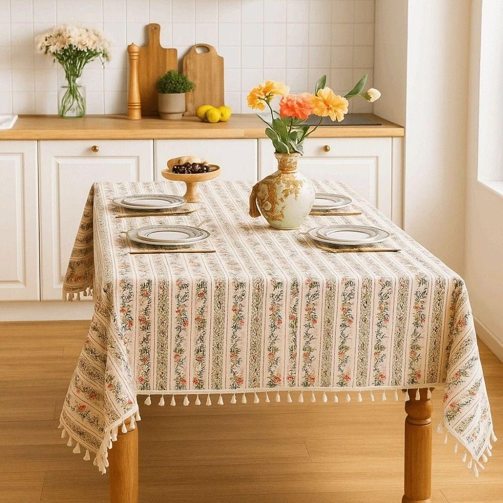 Rectangular Printed Tassels Tablecloth Smooth Party Supply Table Cover Cloth Anti-Slip Anti-splash Water Desk Protection Cover