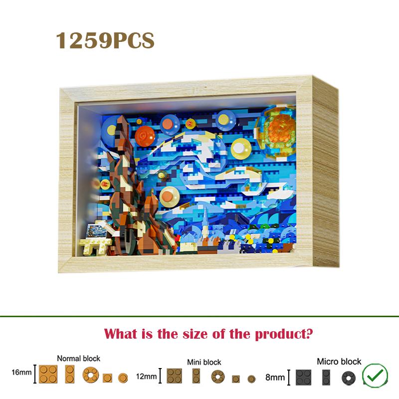 Креативная фоторамка «Звездная лунная ночь» 3D Микро Строительный Блок Мировая Известная Картина Украшение Кирпич С Освещением Подарки для Детей Игрушка