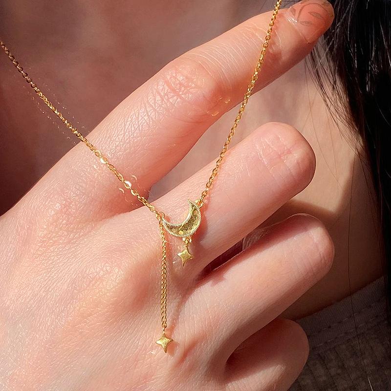 Inspired Sparkling Star Moon Necklace Creative Design Irregular Broken Ice Pendant Tassel Collar Chain Wedding