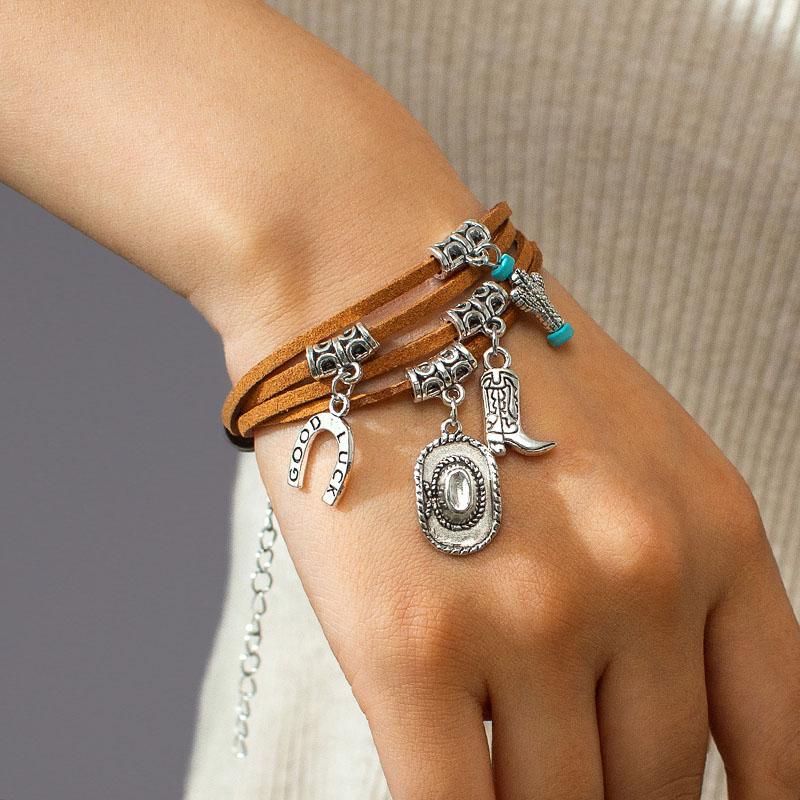 Ковбойская шляпа Сапоги Кактус Шарм Браслет Девушки Ручные аксессуары Новый Ручной работы Y2K Бохо Этнические Кожаные браслеты для женщин