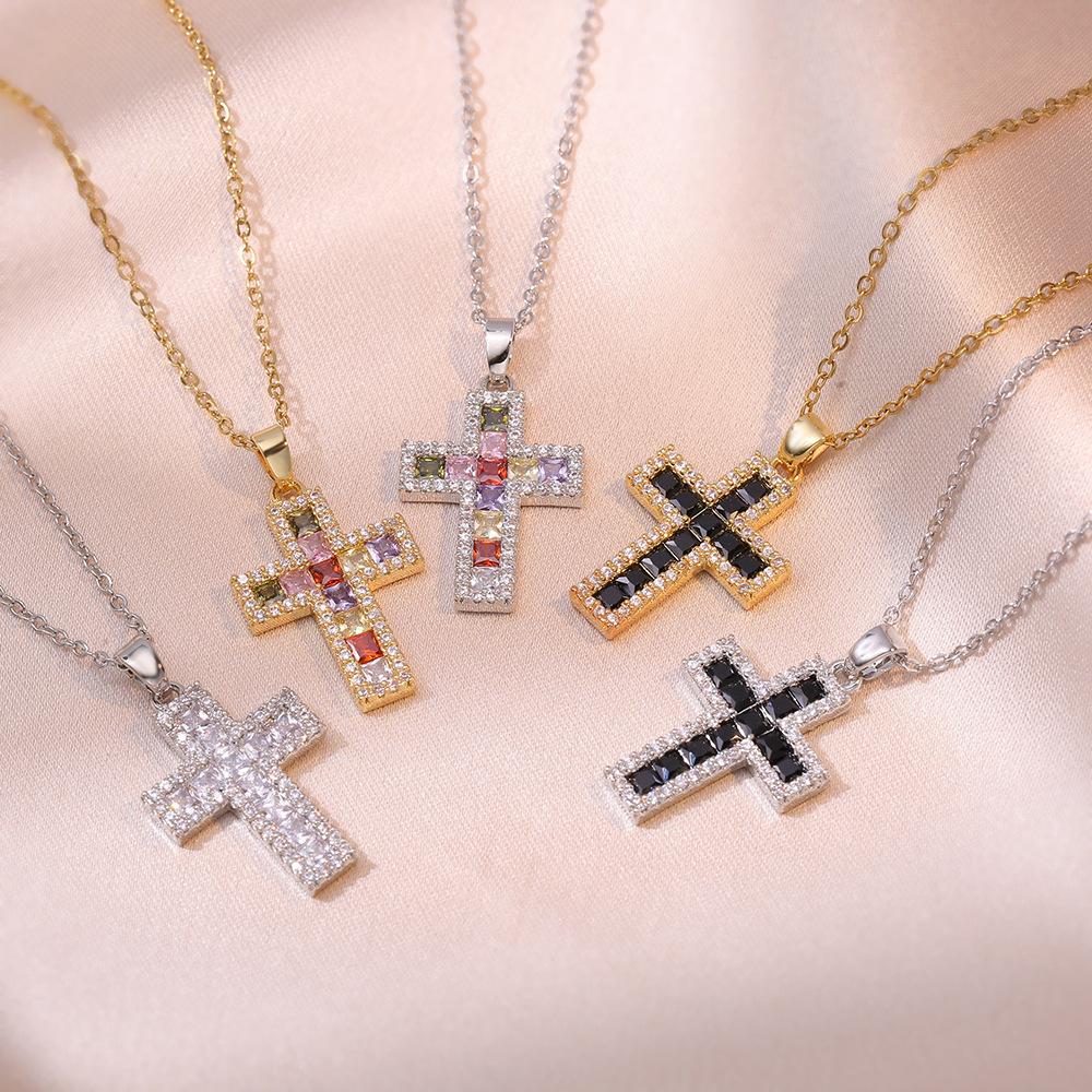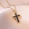 Роскошное Женское Черное Радужное Циркониевое Каменное Крестовое Подвесное Ожерелье Винтажное Золотого Цвета Свадебное Для Женщин