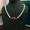 New Arrival Trendy Red Agate Stone Natural Freshwater Pearl 14K Gold Filled Lady Short Chain Necklace Promotion Gifts No Fade