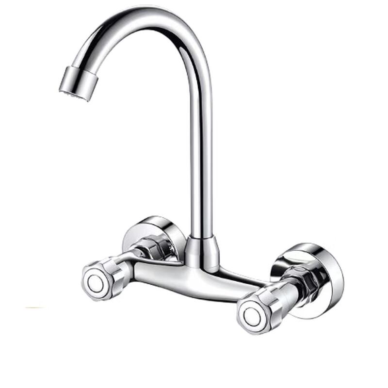 МодельНастенный вращающийся латунный смеситель с двумя ручками - Яркое серебро