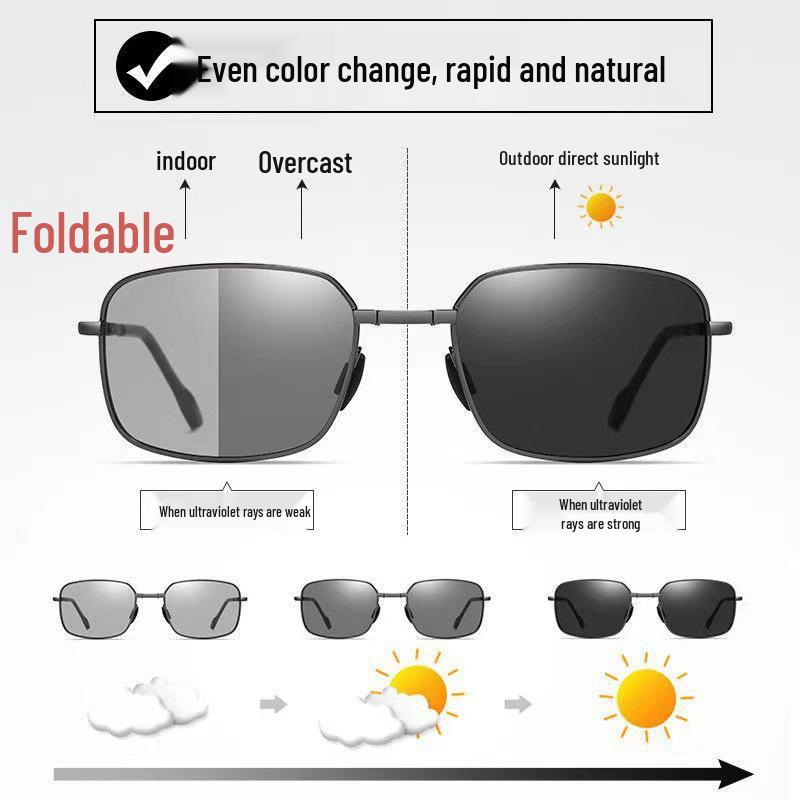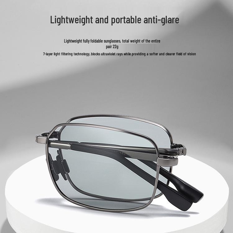 Мужские поляризационные фотохромные складные солнцезащитные очки с оправой из сплава для вождения