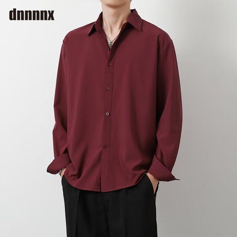 Весенняя Стильная Свободная Однотонная Универсальная Повседневная Рубашка с Длинным Рукавом из Ледяного Шелка для Мужчин Женщин