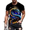 Мужская футболка с принтом дракона Стильная уличная одежда Футболка с круглым вырезом Повседневная футболка больших размеров Верх Женская одежда