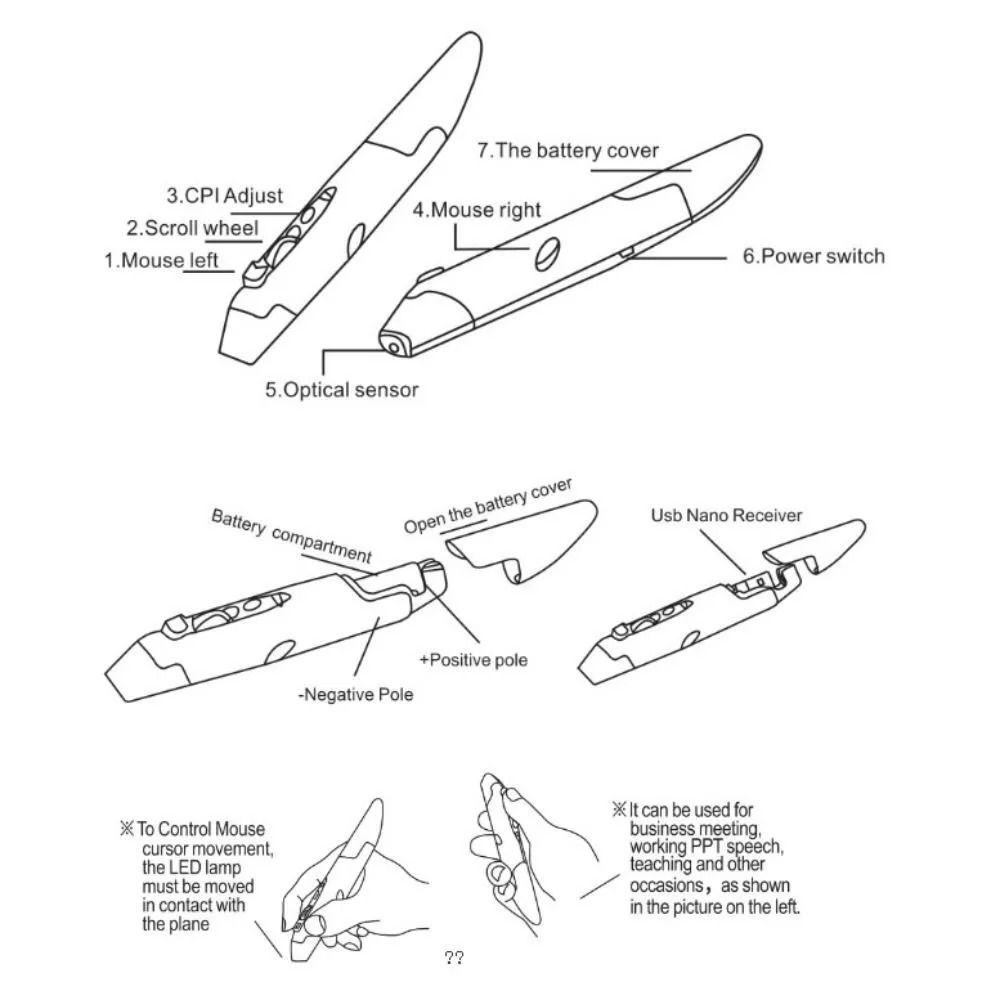 Portable 2.4GHz Presenter Vertical ABS Wireless Mice New Pen Mouse